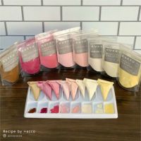 1枚目の画像では、ホワイトチョコレートにKUKKUフルーツパウダーを加える場合のオススメ配合%を記載しております。 加える量によって色味や味わいに違いが出ますので、ぜひ参考にしてみてください。