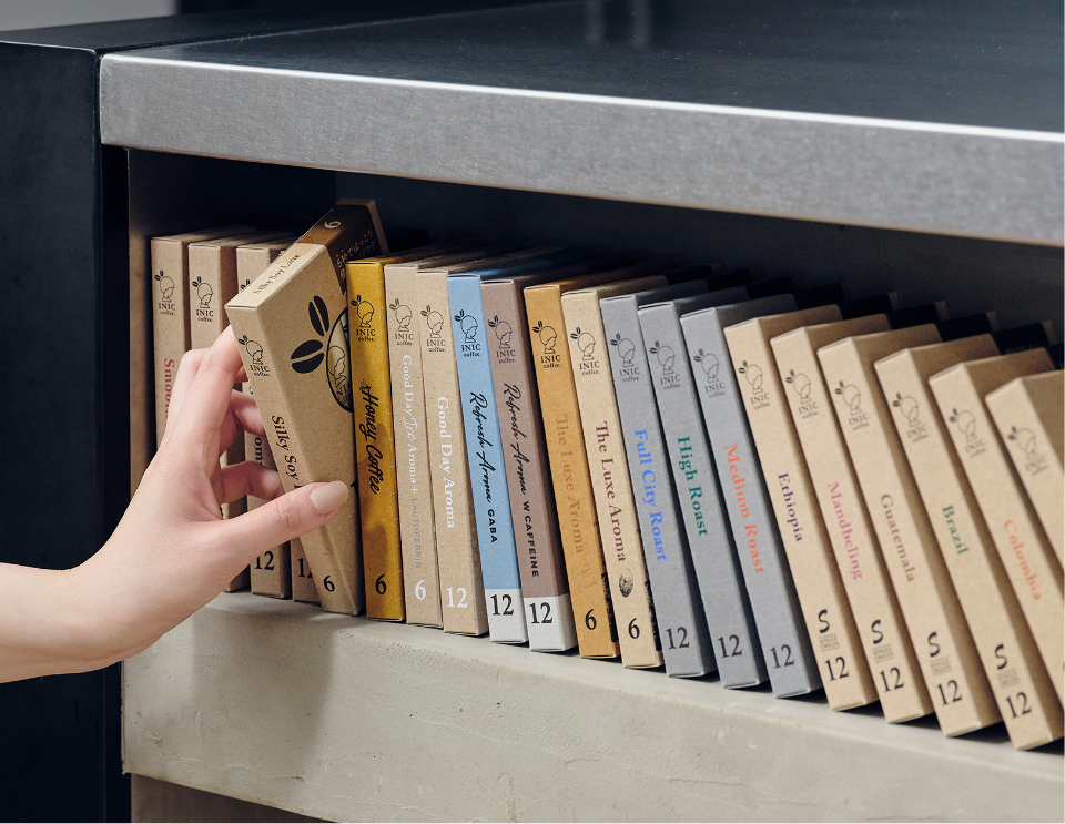 INIC coffee では、豆の産地や焙煎度別、