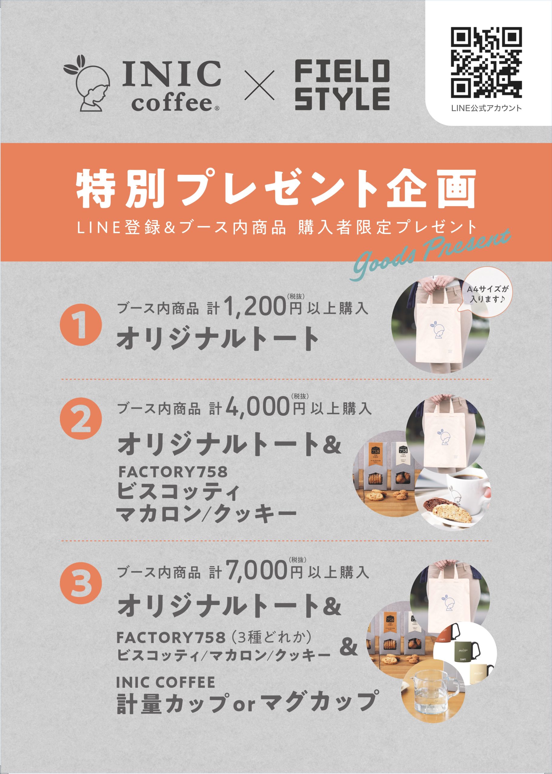 INIC coffeeの試飲をしていただけるほか、イベント会場でしか手に入らない特別なプレゼントもご用意しておりますので、ぜひ遊びにいらしてください。