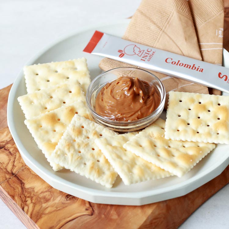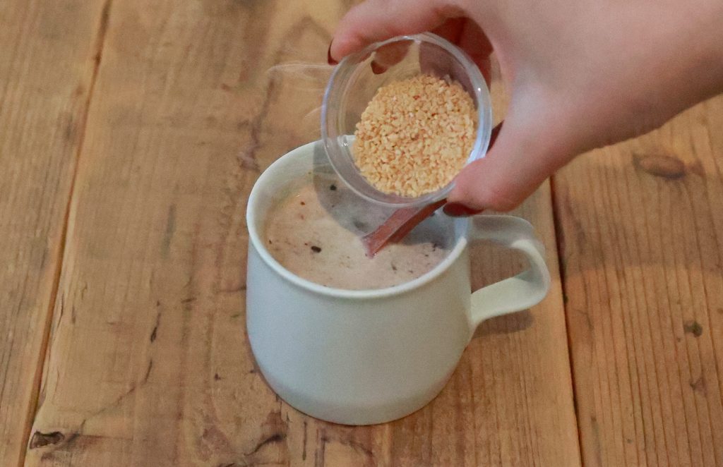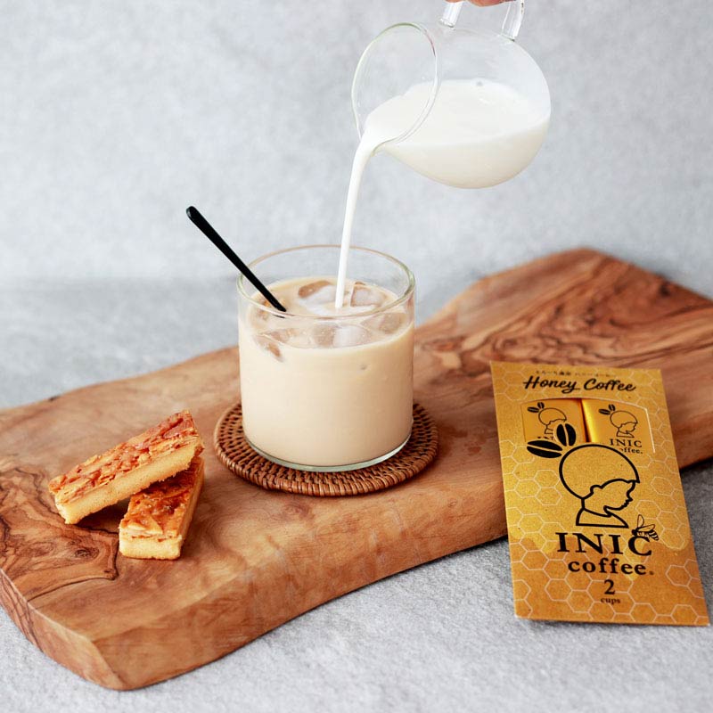 使用するのは、国産ハチミツのパウダーを深煎りコーヒーにブレンドした「ハニーコーヒー」シリーズ。その中でも「ハニーバター」は、バターのコクが加わった濃厚なタイプです。