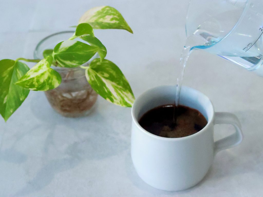通常は150mlのお湯で溶かすところを、あえてギュッと少なくすることで、ドリップコーヒーとは全く違う濃厚な “パンチ” が生まれます。早速、気合を入れる一杯を作ってみました!