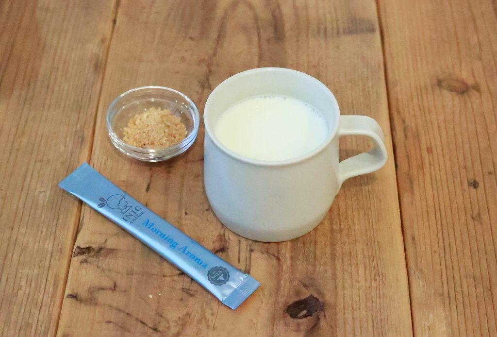 あえて濃いめに溶かして、たっぷりのミルクを入れて