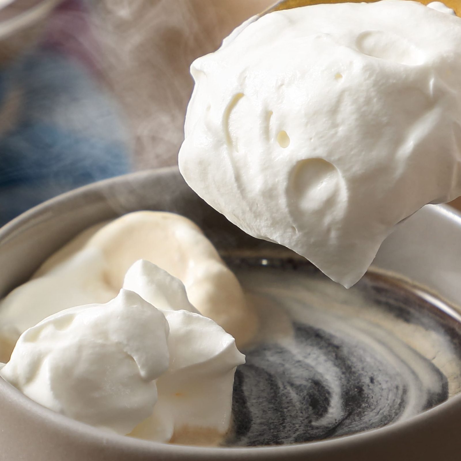 ③90℃の牛乳150mlを注ぎ混ぜて完成