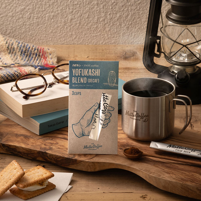 ヨフカシブレンドは、カフェイン含有量を限りなく抑えたデカフェ(カフェインレス)のコーヒーです。飲みごたえにはこだわり、本格コーヒーの味わいはそのままに、夜遅くでも気兼ねなくコーヒーを楽しむことができます。