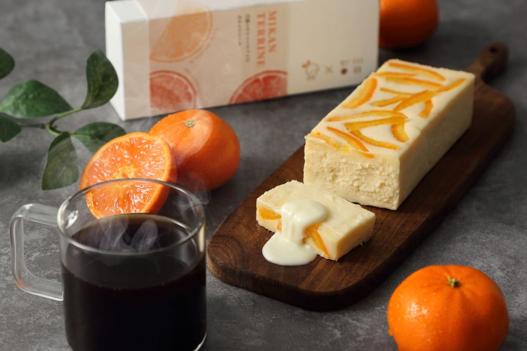これまでも「珈琲ダークチョコテリーヌ」や「栗と白餡の珈琲ホワイトチョコテリーヌ」など、ご好評いただいた商品を開発。そして今回、「アン・パティスリー七日」さんの地元・愛媛県が誇る「みかん」に着目し、新たなペアリングを楽しめる一品が完成しました。